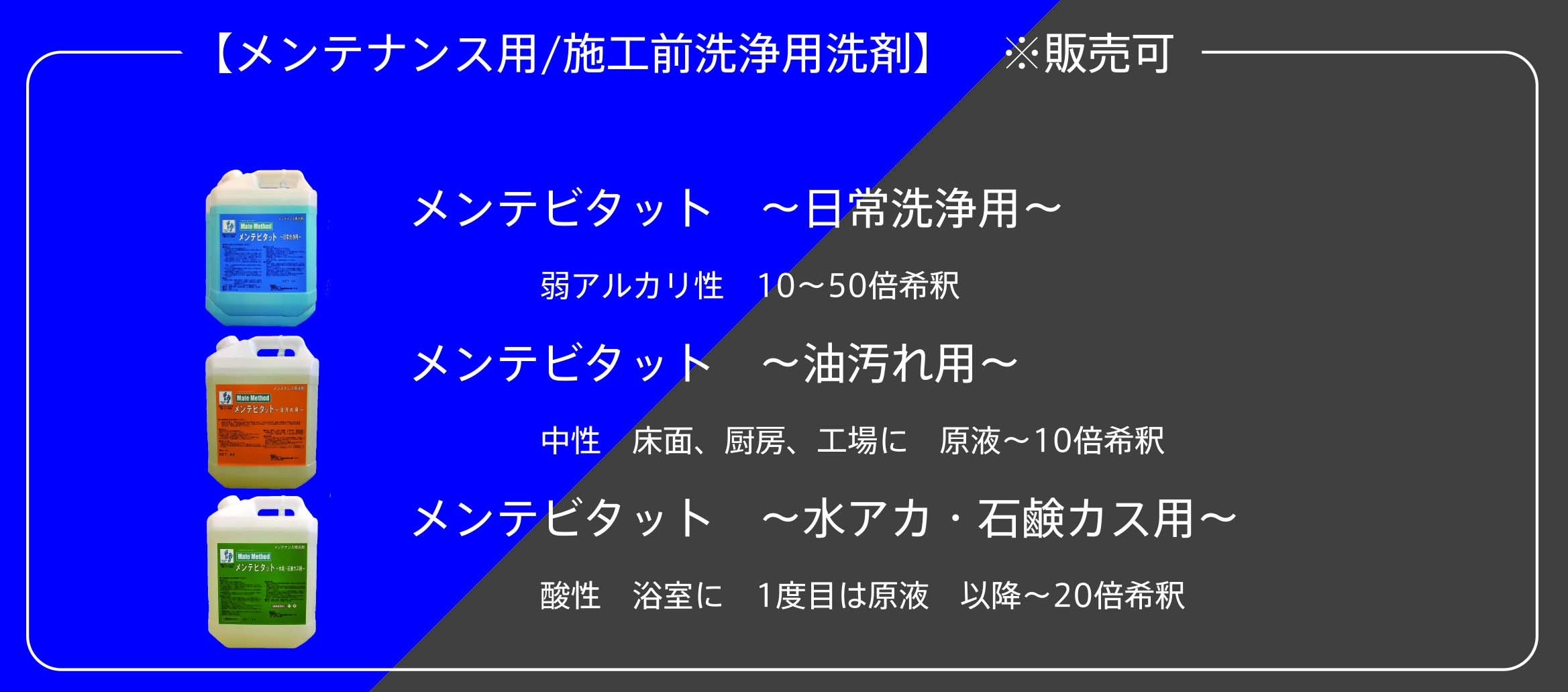 これらの洗剤は、床面洗浄の際に使用します。そして、ASL工法施工後のメンテナンスとしてもご使用いただけます。